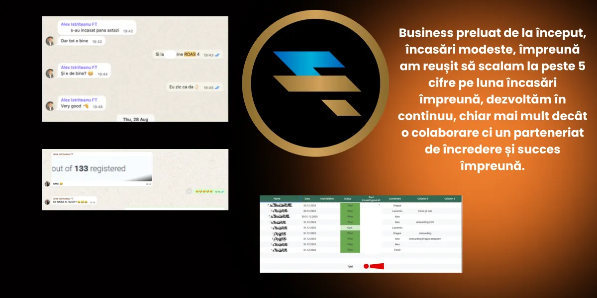 În paralel, dezvolt Kazo, un ecosistem dedicat pieței imobiliare, unde lucrăm cu agenți și agenții care vor exclusivități, poziționare premium și sisteme reale de generare a lead-urilor și vânzărilor.
